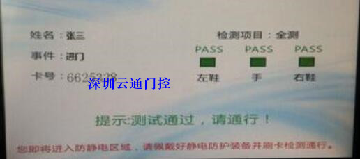 測(cè)試模式: 1.刷卡+測(cè)試手腕帶成功開(kāi)門(mén) 2.刷卡+測(cè)試靜電鞋成功開(kāi)門(mén) 3.刷卡+手腕帶與靜電鞋同時(shí)成功開(kāi)門(mén) 4.免測(cè)卡(刷卡無(wú)需檢測(cè)則開(kāi)門(mén)) 備注:每張卡的測(cè)試項(xiàng)目 姓名 部門(mén)等信息均可由軟件自行設(shè)定 顯示: 刷卡后,卡信息(姓名、卡號(hào)、事件、所需檢測(cè)的項(xiàng)目及結(jié)果)顯示在7寸LCD屏上面。 根據(jù)LCD屏提示項(xiàng)目核實(shí)并檢測(cè),成功后則顯示“測(cè)試成功 請(qǐng)進(jìn)入”閘機(jī)開(kāi)門(mén)并有通行指示燈提示,進(jìn)入車(chē)間。測(cè)試失敗則顯示 “測(cè)試失敗 禁止通行”閘機(jī)不開(kāi)門(mén)。 所需檢測(cè)的項(xiàng)目及結(jié)果均在在靜電測(cè)試LED燈提示 提示信息包括(HIGH、PASS、LOW)及區(qū)分左右腳,或采用“阻值數(shù)字顯示”式測(cè)試儀。 軟件可記錄刷卡人的姓名 部門(mén) 工號(hào) 測(cè)試項(xiàng)目 測(cè)試結(jié)果等信息 支持導(dǎo)入導(dǎo)出人事列表及記錄